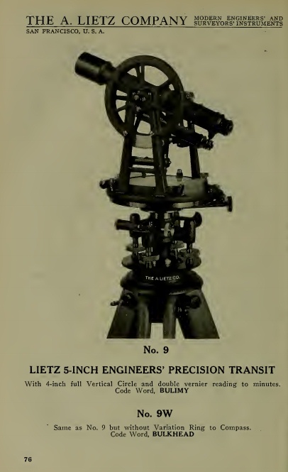 A. LIETZ CO. HISTORY by Francois "Bud" Uzes Adolph Lietz was born in Leubeck, Germany in 1860. He immigrated to San Francisco in 1879 and worked in several scientific instrument shops before opening his own business. Lietz purchased the business of Carl Rahsskopff in 1880 and began his own business in 1882. Lietz originally joint ventured with another maker, Gottlieb A. Mauerhan, to form "Lietz and Mauerhan," a relationship that lasted for about a year. Following Mauerhan's departure, Lietz paired up with Conrad J. Weinmann who had previously worked for Carl Rahsskopff. The company was renamed "A. Lietz & Co." and at that time produced surveying instruments and related tools. The firm incorporated in 1892 under the name "The A. Lietz Company" and Weinmann possibly left at about that time. In 1910 a complete line of drafting materials and engineering equipment was added. In 1947, after 65 years of production, the firm discontinued the manufacturing of surveying instruments. The reason given was that it would be necessary and very costly to retool in order to manufacture the types of modern instruments then being marketed. Their business changed to being an importer and distributor. In 1960 the company started handling the Umeco brand of surveying instruments and then added instruments from Japan made by Sokkisha. The Frank Paxton Company purchased the business in 1965 and moved its headquarters to Kansas City, Missouri. The company name was also changed to "The Lietz Company." Additional restructuring took place during the early 1990's and the firm name was again changed, this time to "Sokkia." References: (1) Smart, Charles E. The Makers Of Surveying Instruments In America Since 1700 Troy, New York: Regal Art Press. 1962 (2) Lantz, Kristy "Lietz, A History of the Company," Professional Surveyor, Frederick, MD, March/April 1984 (3) Lietz catalogs of 1888, 1894 and 1911 (4) late-19th century San Francisco city directories Excerpted from “Makers of Surveying Instruments of America since 1700” by Charles Smart, 1962, Vol 1, p. 133: