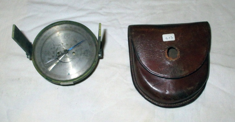 Serial Number: Type: Pocket Compass Circle Diameter: Distance between sights: Height: Weight: Condition: Good Box: Leather Case Found: CEH Inventory# C13 Note: Engraved - Property of Land Dept N. R. R. R. Co. No. 18