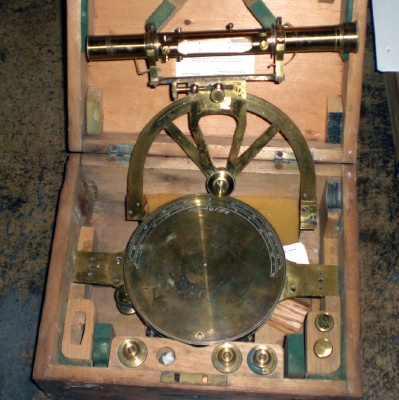 Serial Number: Note in box reads: This circumferenter repaired and cleaned, the new limb arch and telescope added by W. & S. Jones, 30 Holborn, London, July 26, 1852 |