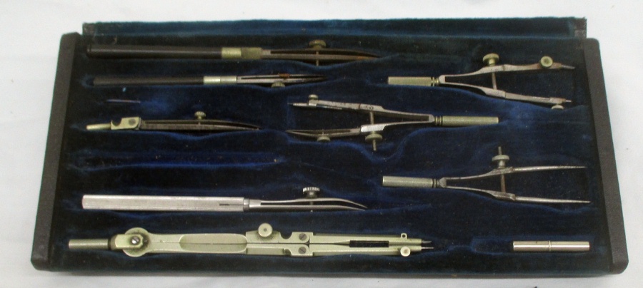 Condition: Good, some tarnish on drawing tools. 1 piece missing