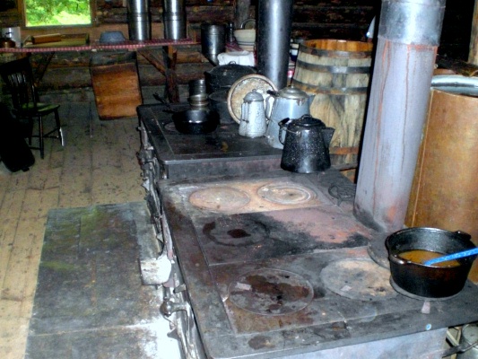 Working as a cook in a logging camp was not an easy job with long days as described below: "The cook and his three assistants, or cookees, were hard pressed to stay ahead of the lumberjacks' hearty appetites. Breakfast at an 80-man camp might call for 400 to 500 pancakes and a day's baking might be 20 pies or 30 loaves of bread. Meals were disciplined, no-nonsense affairs. Each man had an assigned seat, the cookees saw to it that there was no wait for food and conversation was limited to requests for bread, beans or spuds. The men were in and out of the cook shack in 20 minutes, giving the kitchen staff time to clean up and begin the preparation of the next meal. The cook and cookees had bunks in the rear of the building so their early rising would not disturb the other men."
