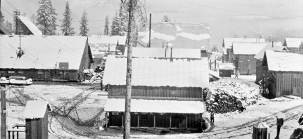![]() Camp 62 - First snow, 10-6-24. Large Building on the left is the dinning hall. Building in center is the camp office - CEH photo |