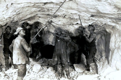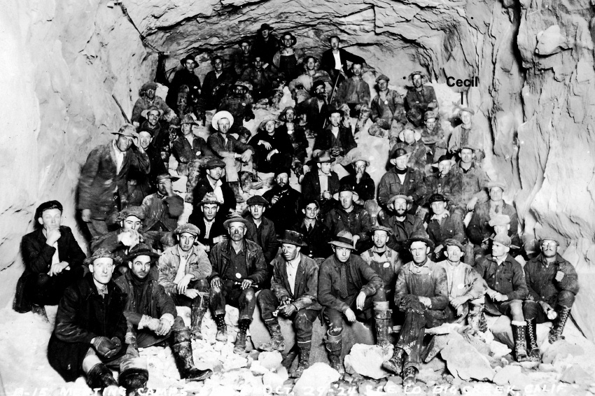 ![]() After dynamiting to extend the tunnel, workers used poles to dislodge any loose rocks from ceiling to avoid having them fall out later and hit workers. - Edison photo |