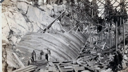 ![]() Florence Lake multiple arch dam (early 1925). Frog pond section - first concrete pour - CEH photo |