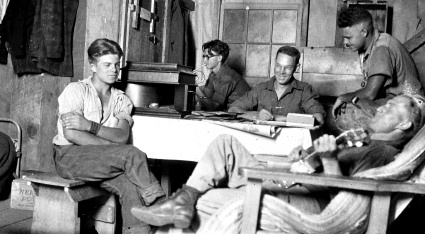 ![]() Surveyors relaxing in a bunkhouse. Six men occupied one room. Life was simpler - CEH photo |
