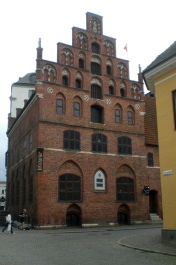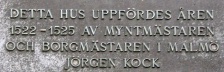 This building is near location of where Carl Alfred lived when he was growing up. Placard reads: "This house was built between 1522-1525 by the coin master and mayor of Malmo." |