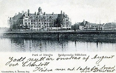 IDA AND ANNA'S HOME In letter dated February 3, 1947 to Bill and Harriett, Ida listed her return address as Dahlgrenska Stiftelen B2. (In a 1941 letter to Cecil and Anita she listed Andreegaten 2 as her return address which I believe is the same location.) From her letter, she wrote describing her location: "...youngsters have a great time skating on the canal outside our window (our house a big castle) is located in a big park, and very nice..." This place was demolished in 1978 but its history is noted in Wikipedia: "Dahlgrenska Foundation is a charitable foundation in Malmo, best known for his now-demolished castle-like building in the district Rörsjöstaden, where needy people could stay for free.