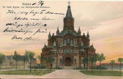 ![]() Early postcard of St Pauli with the Dahlgrenska Stiftelen in the background to the left |