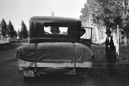 ![]() Post card from Cecil to Daisy: "Traveling fine. 825 miles, no flats Zion Park was a great side trip. Staying here till Tues am. Driving to Yellowstone, a day trip to west entrance, via Idaho Falls. Warm to-day. Visiting Saltain(?) tomorrow. Save card. 20 miles to gal." - postmarked August 17, 1931 |