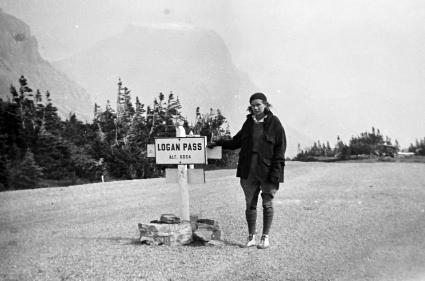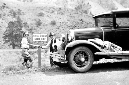 ![]() Gladys and Papa at stateline between Montana and Wyoming on the way to Glacier National Park. |