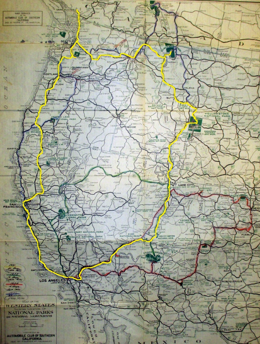 ![]() 1931Trip in yellow - 30 days, 4,800 miles in a Model T Ford. |